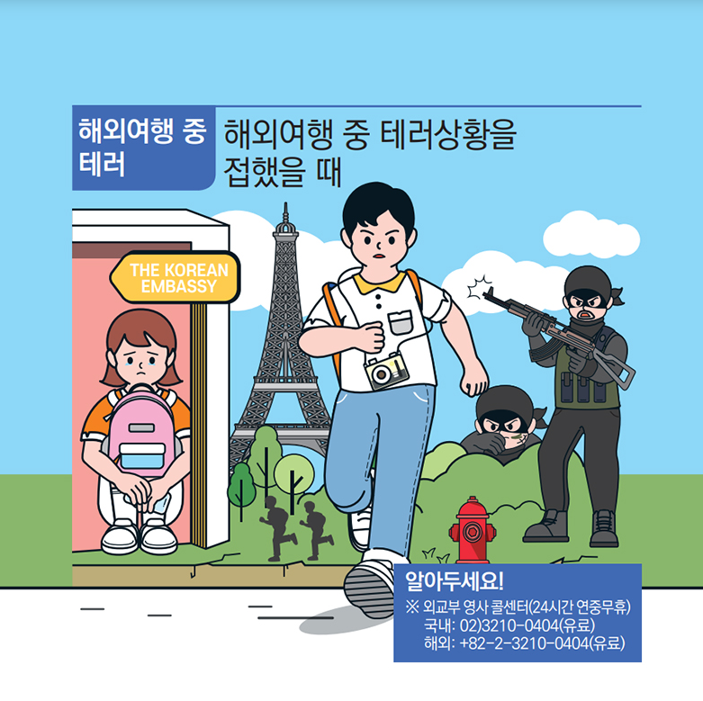 국무조정실 대테러센터와 국가정보원에서 테러피해를 예방할 수 있는 행동요령 책자를 발간했다고 하면서 '대한민국 정보브리핑' 멀티미디어 게시판에 업로드 한 내용입니다. 작년 러시아 우크라이나 전쟁부터 최근에 발생한 하마스 테러로부터 시작된 하마스, 이스라엘 전쟁까지 우리는 아직까지 전쟁이 횡행하고 있는 세상 속에 살고 있으므로 이런 내용 정도들은 숙지해야 한다고 생각합니다. 특히 우리나라는 아직 휴전국이기에 더욱 잘 알아야겠죠?