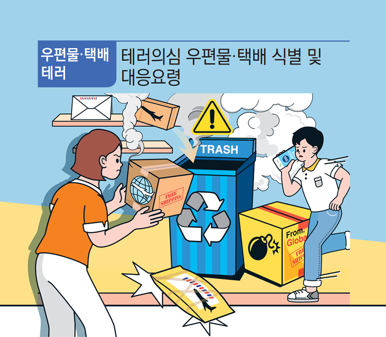 ① 외국에서 보낸 발송자 미상의 우편물이나 택배, 또는 테이프나 끈으로 과도하게 포장된 경우, 크기에 비해 지나치게 무겁거나 화학물질 냄새가 나는 경우 테러를 의심해야 함